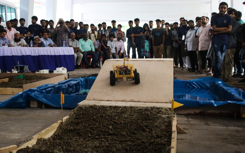 'Robotronics 2019' a national tech-fest, organized by the Department of Mechatronics Engineering, RUET, sponsored by  Mercantile Bank Limited, was celebrated in a festive mode on September 26, 2019. The technical partner of this program was the Robotic Society of RUET (RSR). Competitors from various universities and colleges across the country participated in this fest and made it successful and glorious. Competitions included Speed ​​Battle, Robo-Wrestling, Mud Rover, Poster Presentation, and Project Showcase. After the inauguration at 8 am in the morning, all the events took place in a grand manner at the RUET campus. The judges visited all the projects and marked down. Guests and visitors also enjoyed all the exciting events. 'Robotronics 2019' ended at 7 pm with the distribution of certificates and prizes among the winners. Organizers believe that 'Robotronics 2019' has succeeded in encouraging the youths of the country to develop innovative projects and ideas in their life. The news of the event can be found in the following link.